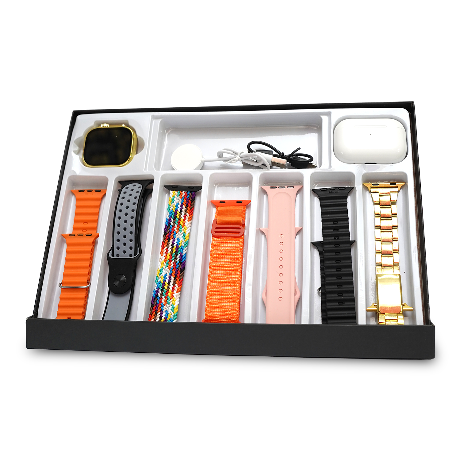 H20 Smart Watch & Wireless Earphone Set – 49MM Gold Edition | 6-in-1 Strap Combo